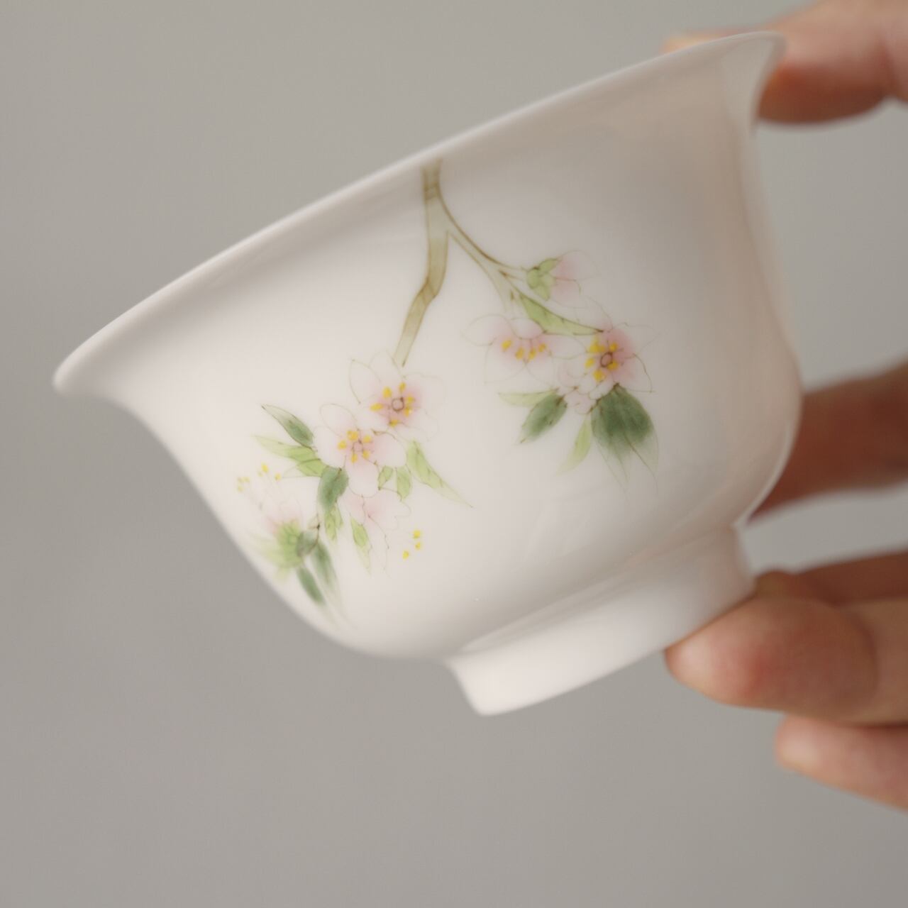 桜 蓋碗 | Hand-Painted Sakura White Porcelain Gaiwan