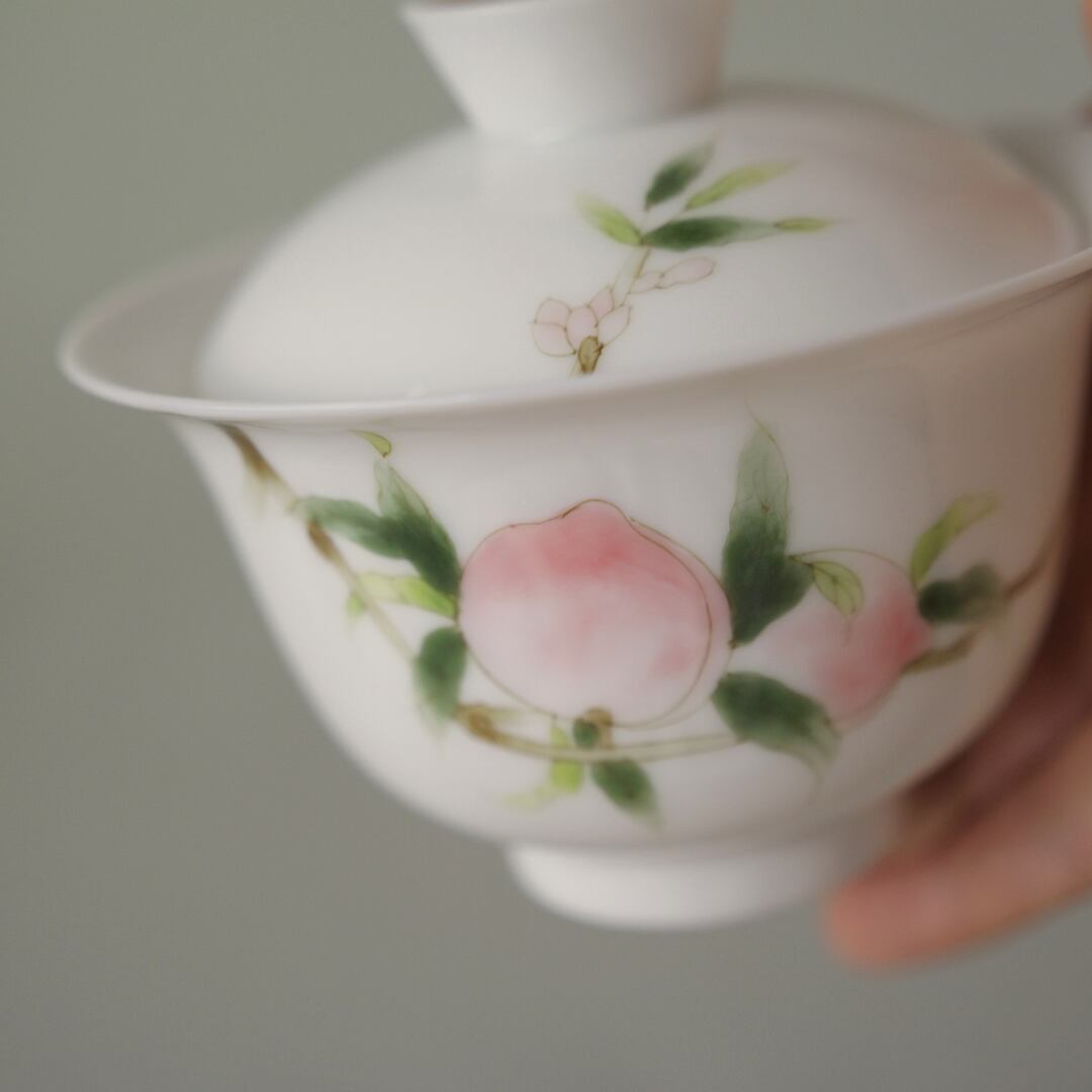 桃 蓋碗 | Hand-Painted Peach White Porcelain Gaiwan