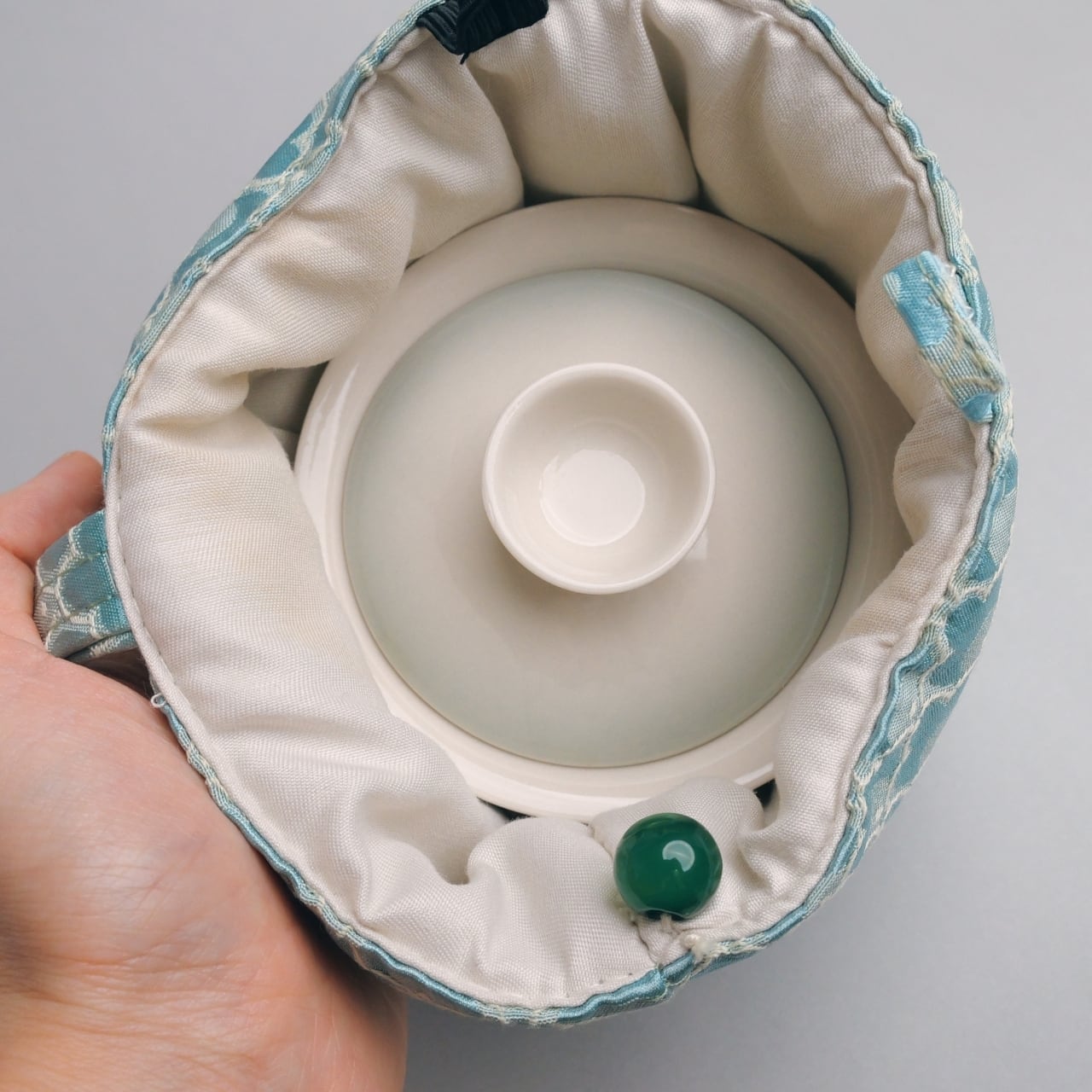こちらのセットで基本的な中国茶のスタイルをすぐに楽しめます。そして何よりも、茶器を収納したり持ち運んだりするのに便利な専用の収納袋もセットに。ご自宅での保管はもちろん、旅先やお出かけ先でもお気に入りの茶器とともに、お茶の時間を楽しむことができます。