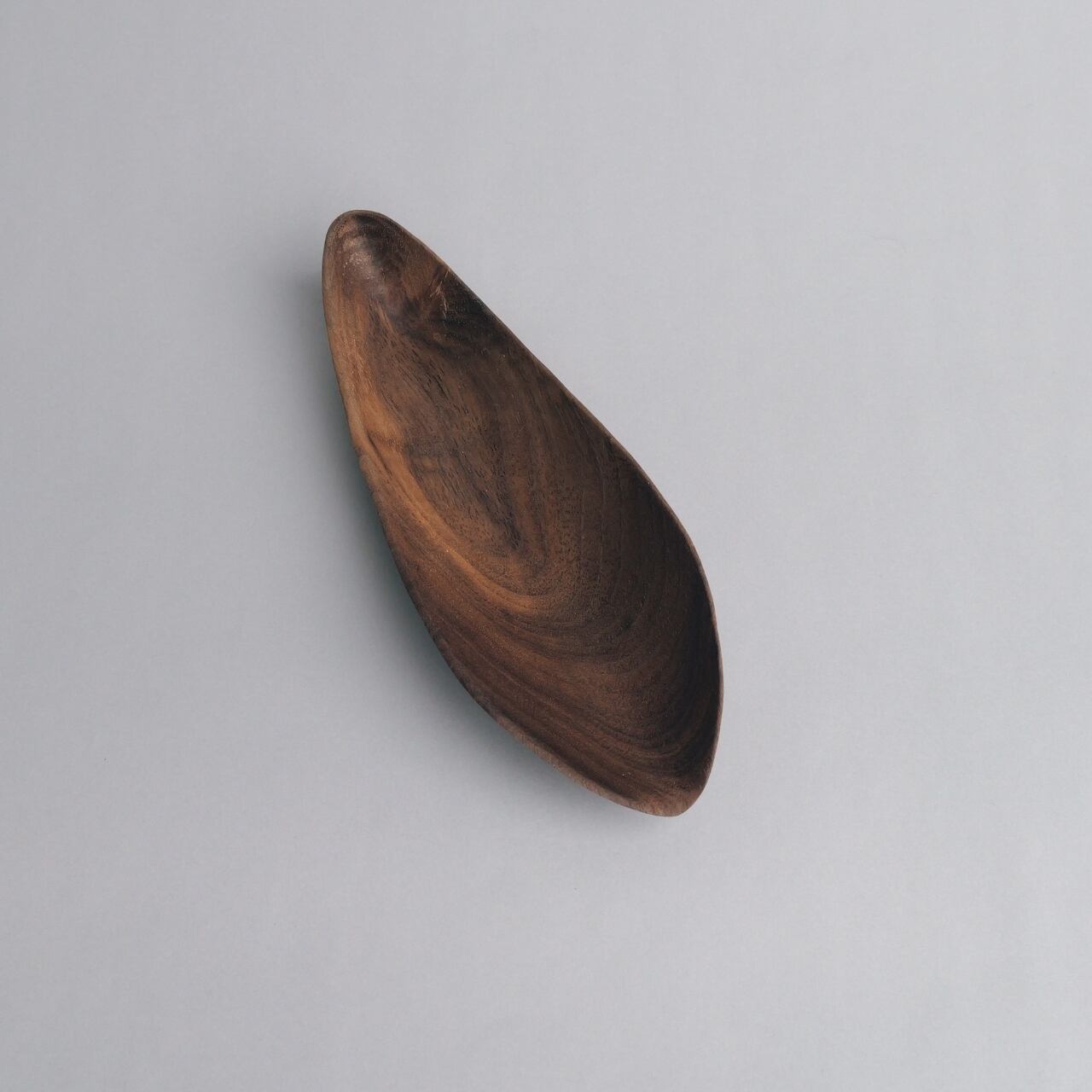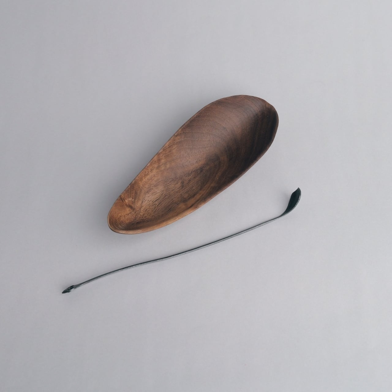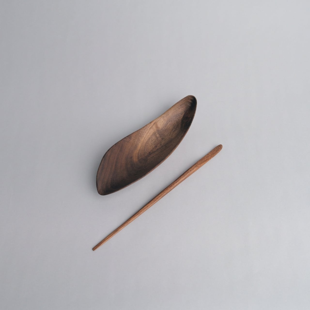 胡桃の木は木目が美しく、硬すぎず、やわらかすぎない質感で、手に持ったときの感触がとても穏やかです。木製の茶則は、陶器に比べて音が立ちにくく、茶葉をのせたときの当たりもやさしいのが特徴。