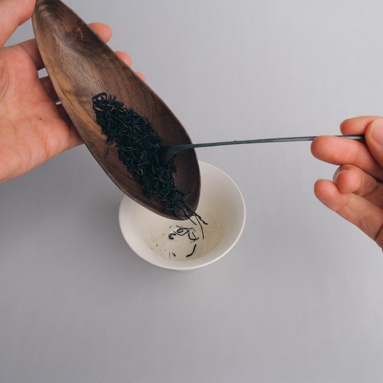 特に繊細な茶葉や、形を崩したくない茶葉には胡桃の木のしなやかさがよく合います。