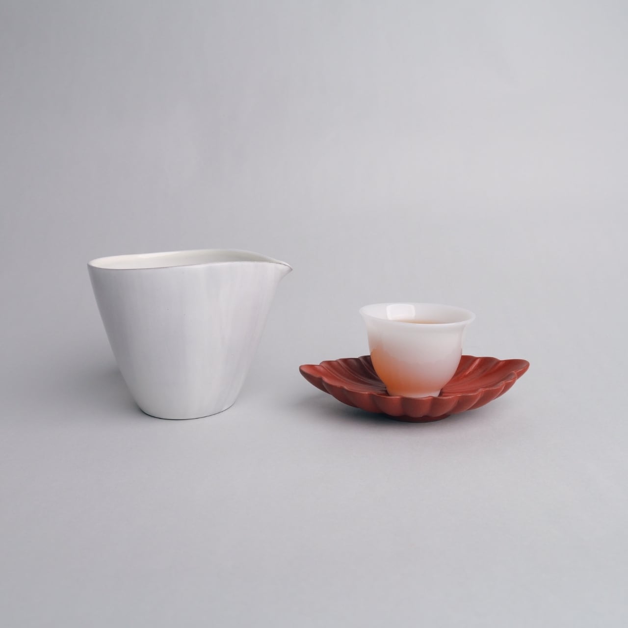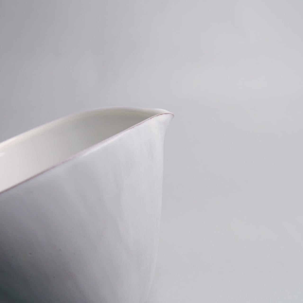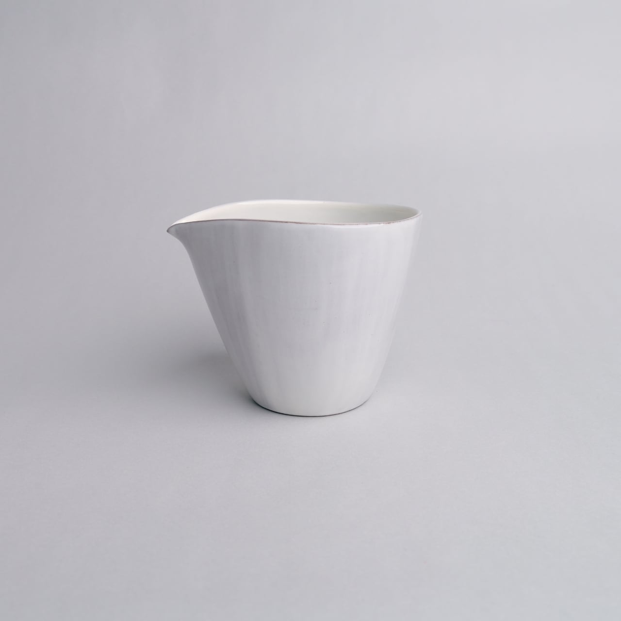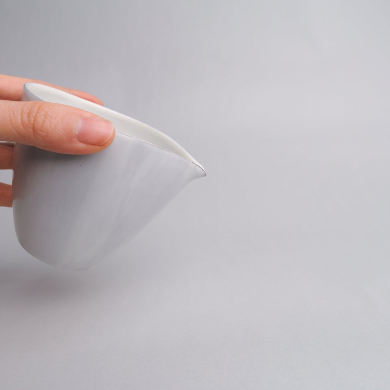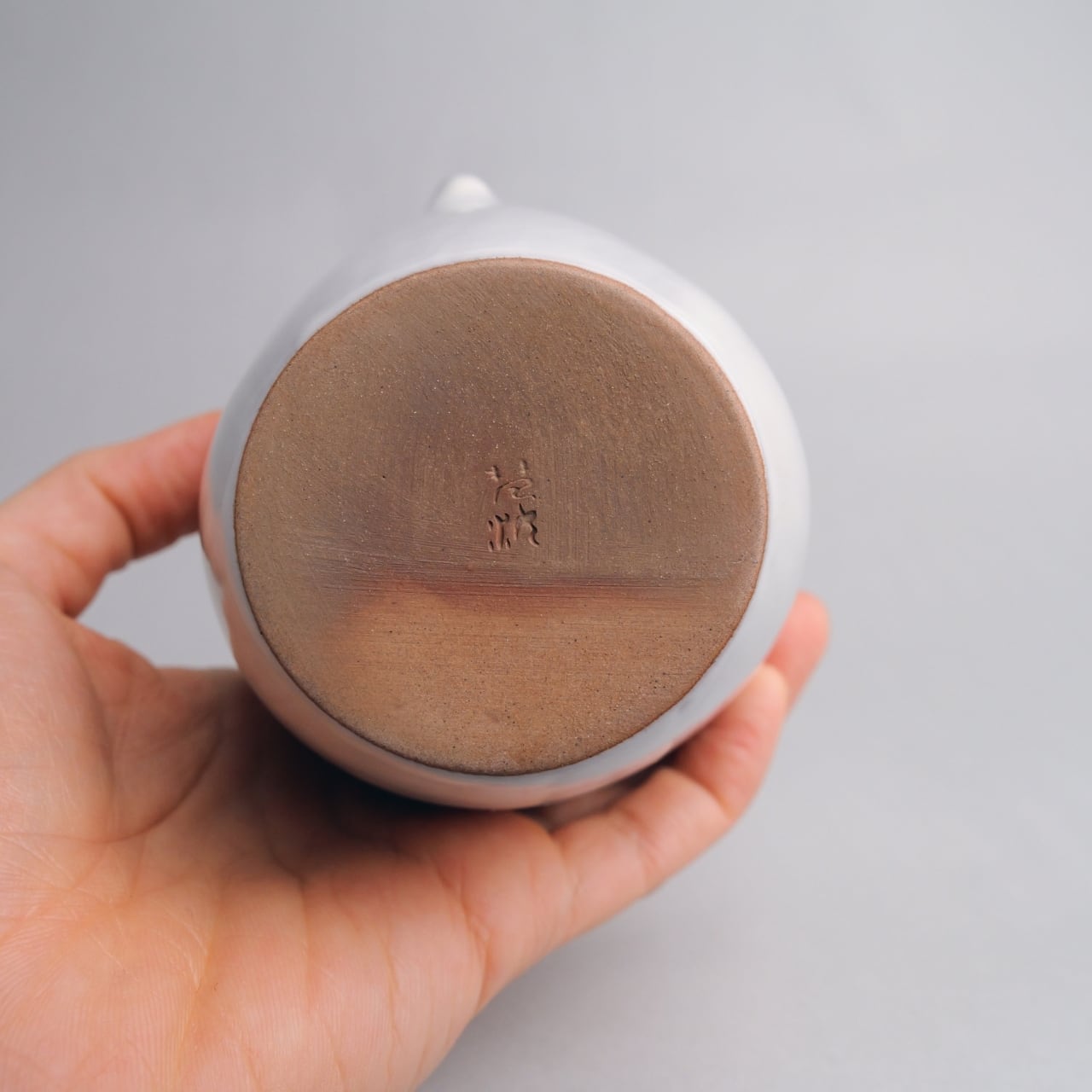 手仕事で作られた粉引(こひき)の茶海です。粉引とは、土で作った器の表面に、白い土をうっすらと重ねて仕上げる陶器の技法です。